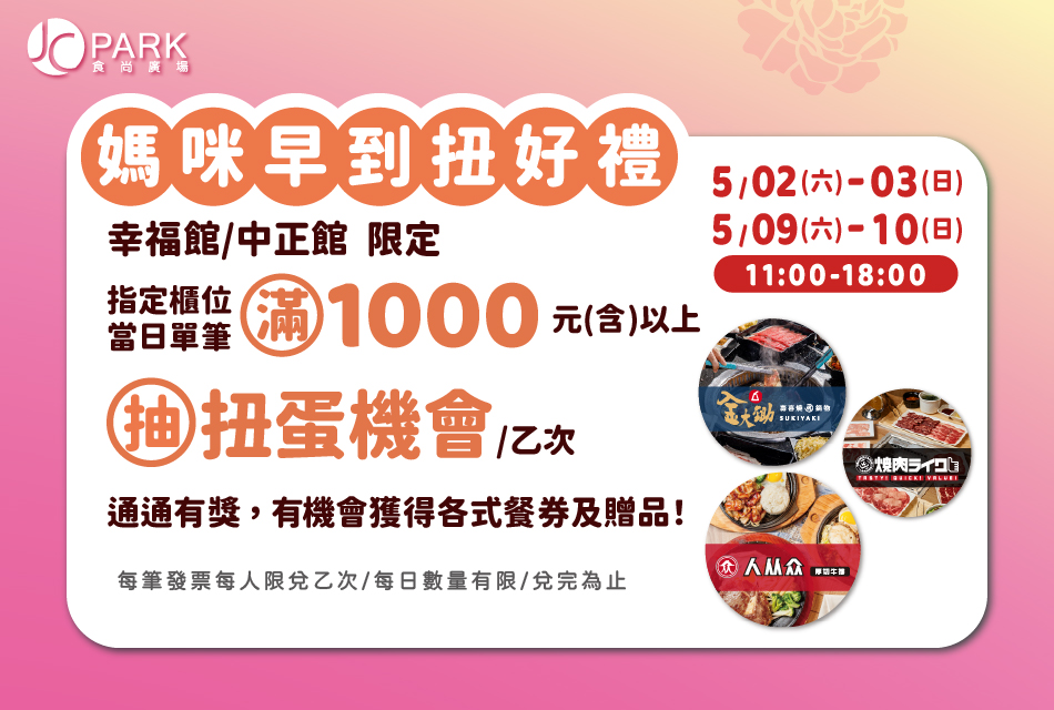 6.JC Park食尚廣場保有最終解釋及修改變更或終止上述活動之權利。
