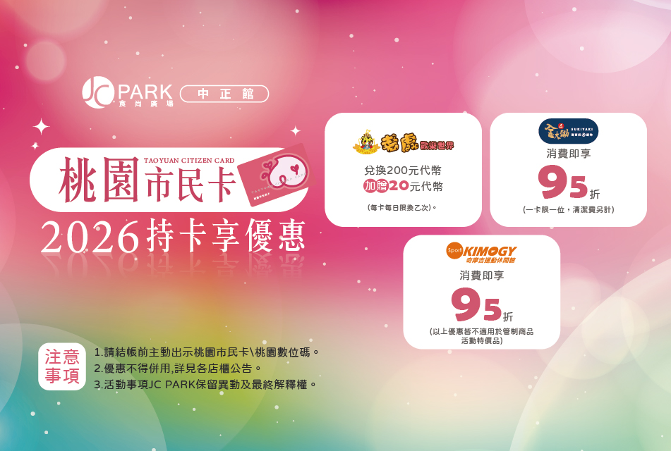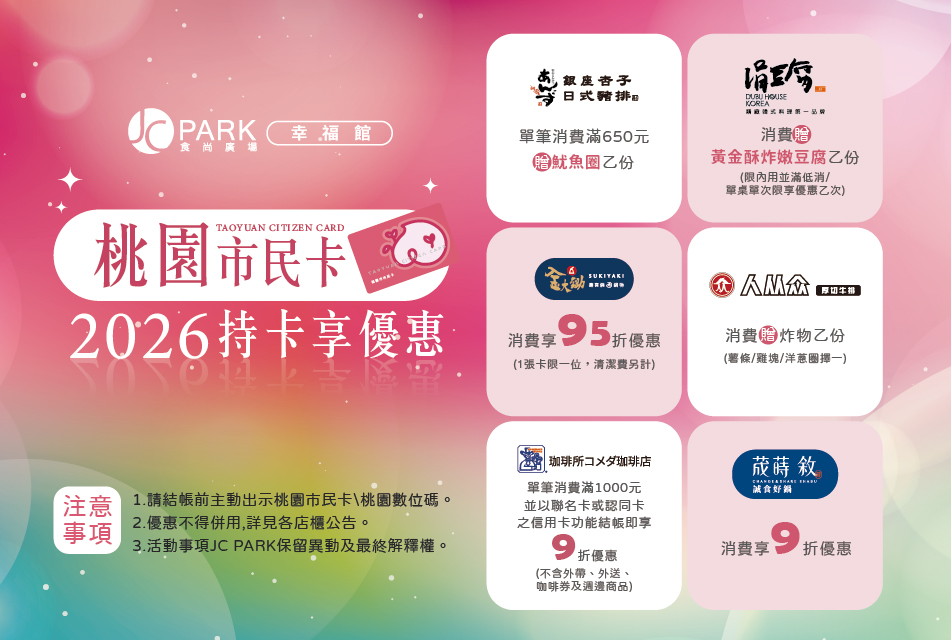 1. 優惠限持桃園市民卡使用,結帳前請主動出示。